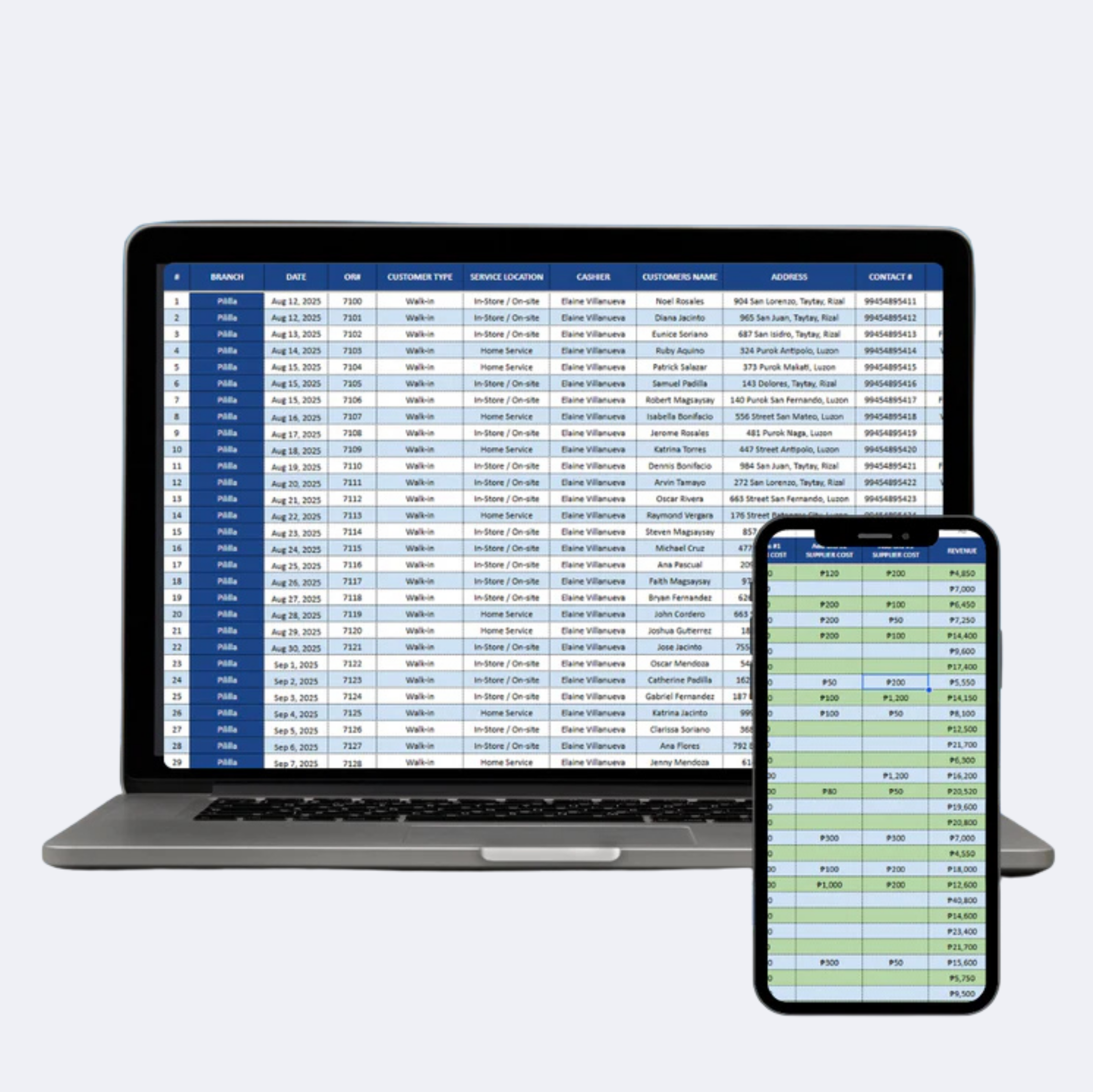 Store all customer details, order records, delivery statuses, payment histories, rider assignments, supplier costs, and income breakdowns in one well-organized sheet—making tracking, verification, and reporting smoother than ever.